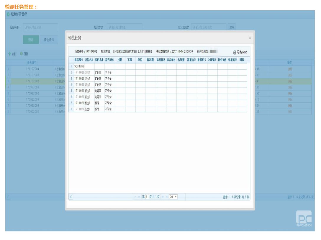 檢測主管根據項目方法要求安排檢測任務,檢測人員檢測結束后處理檢測結果和質控結果,根據質控和檢測結果比較,