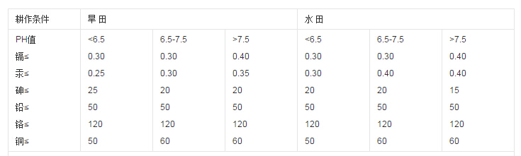 綠色食品產地各種不同土壤中的各項污染物含量不應超過下列表中的限值: